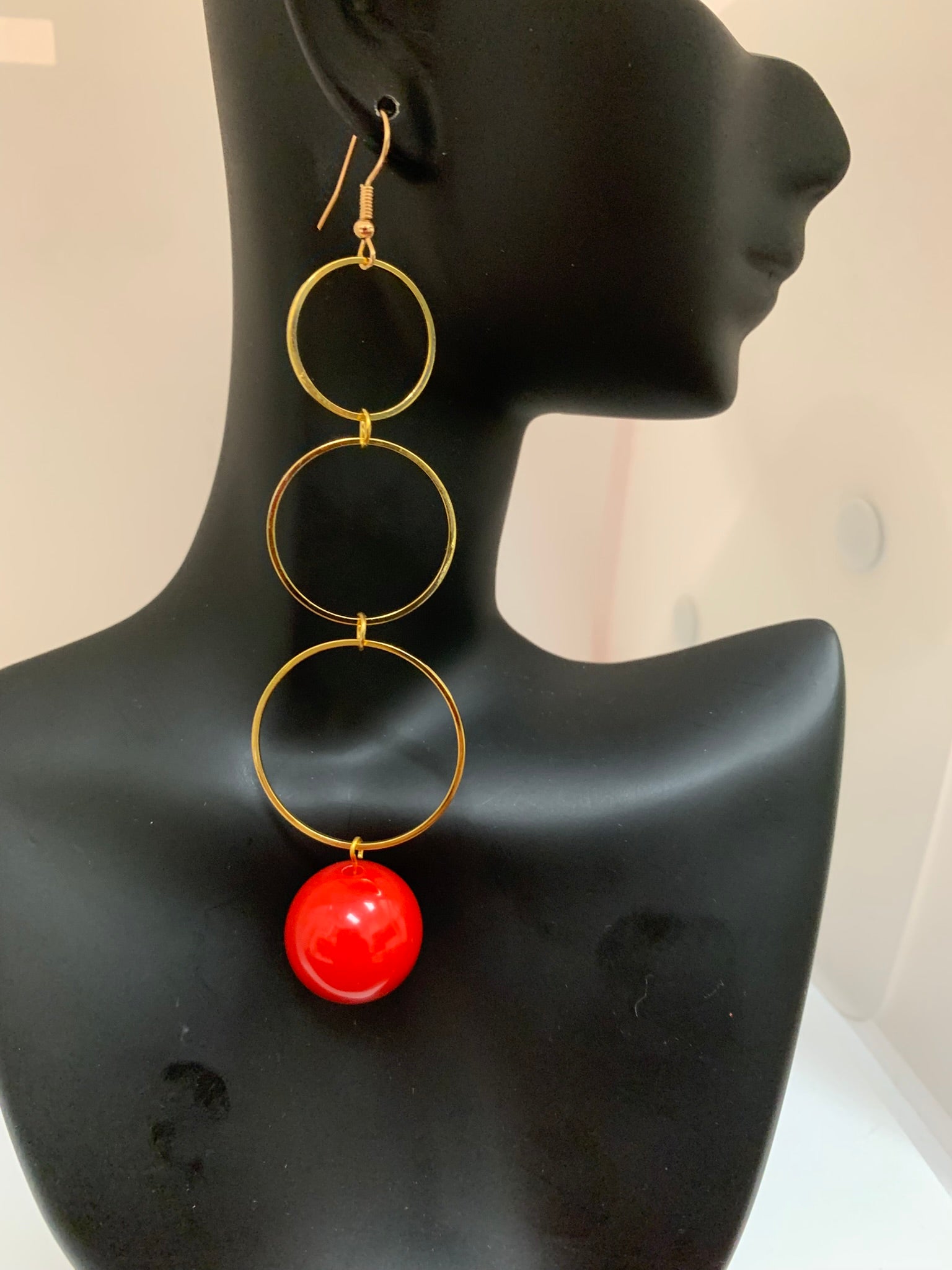 This extra long piece with a gumball at the end in gold town hoops